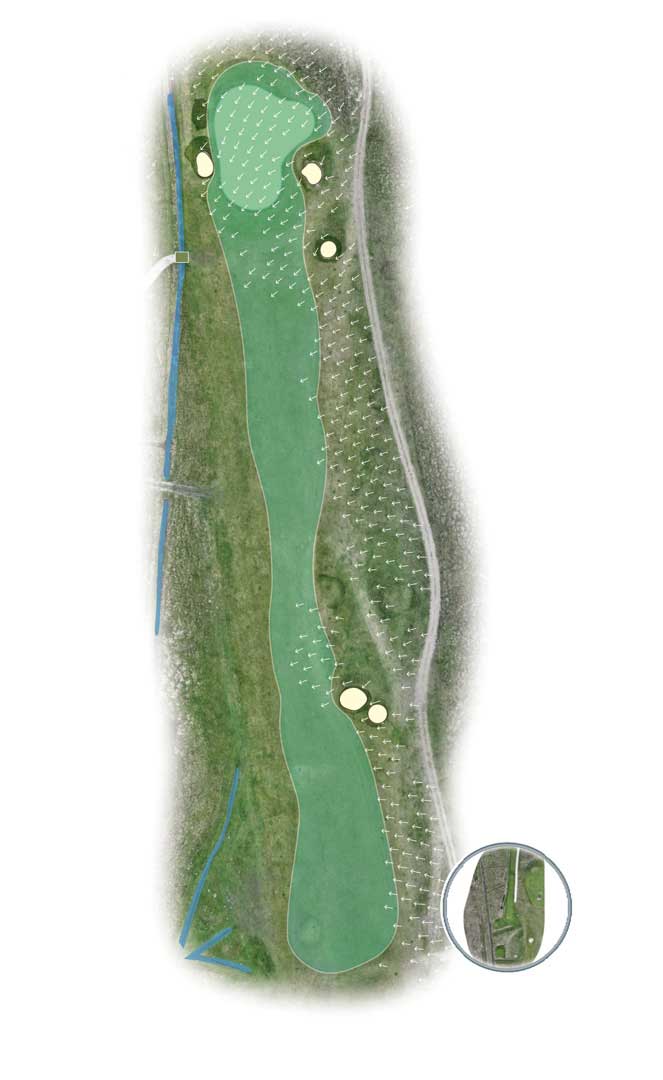 Display bravery with a tee shot down the left side to set up a favourable approach to the green. An accurate second shot to the right side avoids the penalty area lurking on the left, providing a clear path to potential birdie opportunities